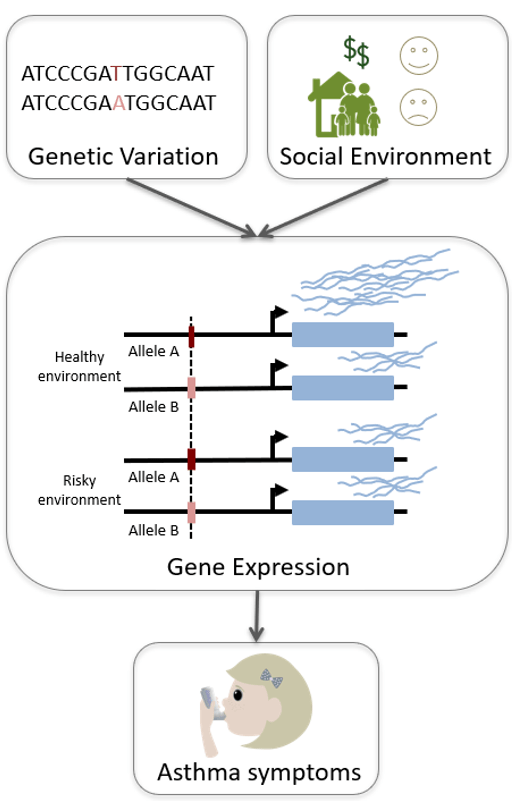 Research Analysis of gene-environment interactions in complex traits Gene-environment interactions in cardiovascular disease GxE, Psychosocial factors, and asthma risk Functional and evolutionary characterization of non-coding variants The regulatory landscape and genetic determinants of host-microbiome interactions Like Loading...